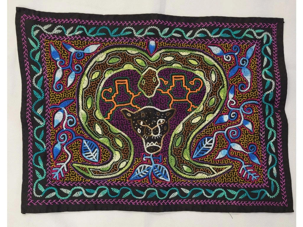 Tato ručně vyšívaná látka pochází z peruánské Amazonie a je vytvořená ženami kmene Shipibo. Vzory a linie se tradičně vyšívají podle ikaros – posvátných zpěvů, které jsou součástí ceremonální kultury Shipibo.