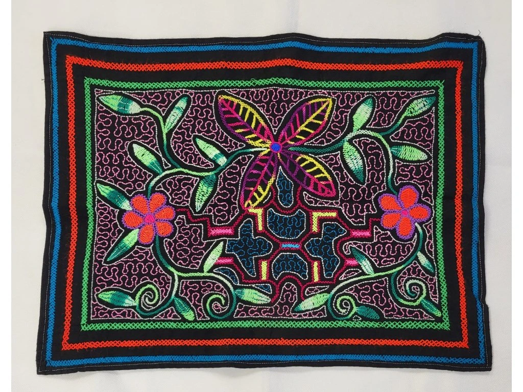Tato ručně vyšívaná látka pochází z peruánské Amazonie a je vytvořená ženami kmene Shipibo. Vzory a linie se tradičně vyšívají podle ikaros – posvátných zpěvů, které jsou součástí ceremonální kultury Shipibo.